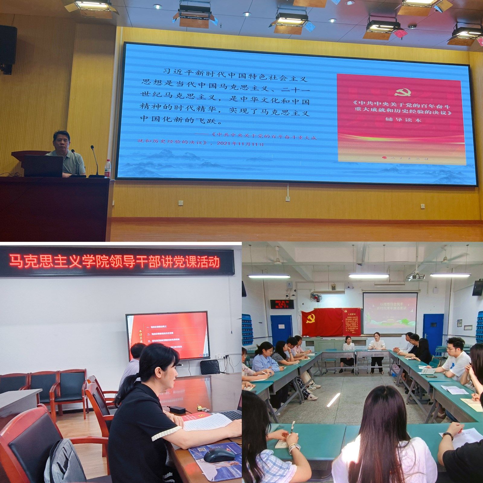 公司领导班子成员专题党课结合主题教育要求,分党委书记计毅波以“马克思主义中国化新的飞跃——深入开展学习贯彻习近平新时代中国特色社会主义思想”为主题、经理黄永昌以“凝心聚力打造共同缔造十堰样本——如何向基层干部群众讲好共同缔造”为主题、副经理成继续平以“全面加强党的纪律建设 扛牢全面从严治党使命担当”为主题、副经理安军以“坚定不移推进全面从严治党,完善党的自我革命制度规范体系”为主题、副书记李童以“以理想信念筑牢新时代青年廉洁意识”为主题,面向公司全体教师、理论学习中心组成员、教师党员、员工党员以及入党积极分子等,对习近平新时代中国特色社会主义思想的基本观点、马克思主义中国化新的飞跃、全面从严治党等方面进行了深入阐释和解读,让公司师生接受了一次心灵的净化和精神的洗礼,进一步坚定了理想信念,深化了党性教育。